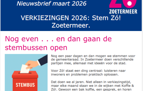 Zó! Zoetermeer is een onafhankelijke Zoetermeerse partij. Wij zijn er voor alle Zoetermeerders en we staan voor een prettig leefbare stad die bestuurd wordt met gezond verstand.